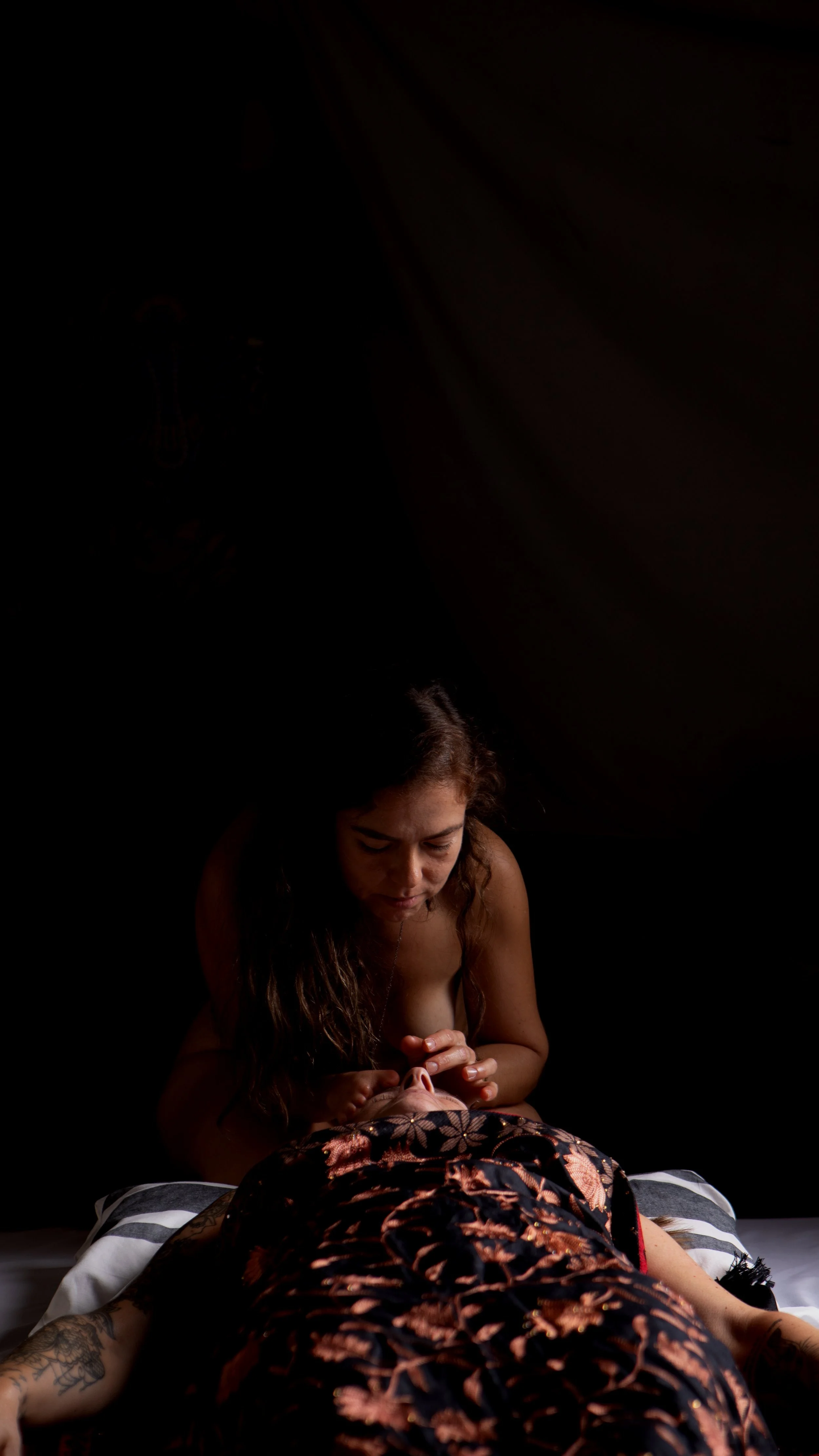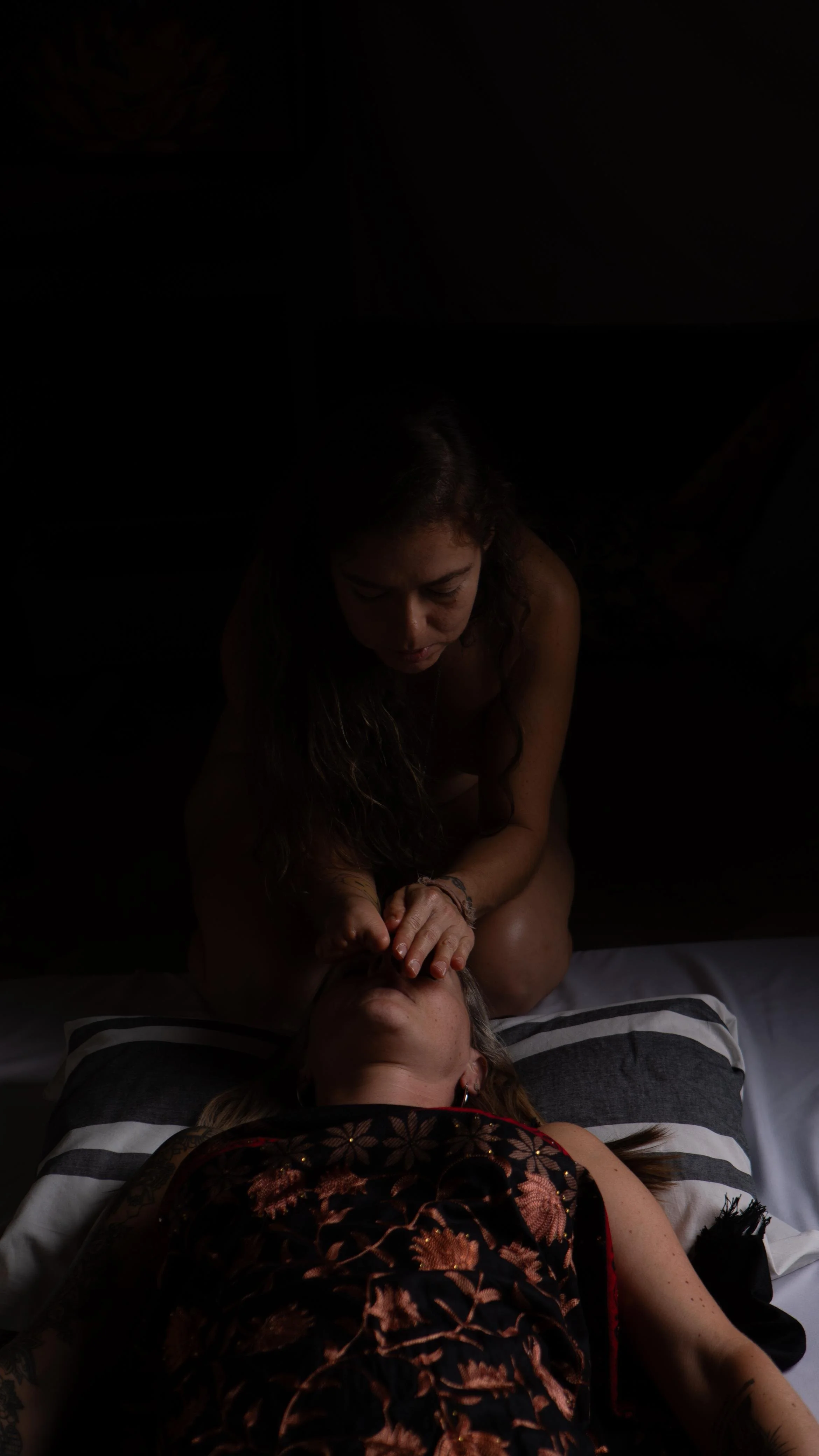 It is beautiful, intimate, sensual and safe. It allows the receiver to let go of the mind, going into a state of deep receptivity while experiencing intense emotions and pleasure.